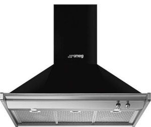 KD90HNE90 cm bred sort emhætte fra Smeg. Den har 4 hastigheder, du kan vælge mellem.