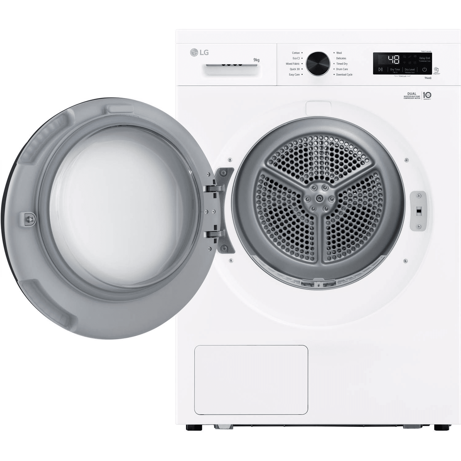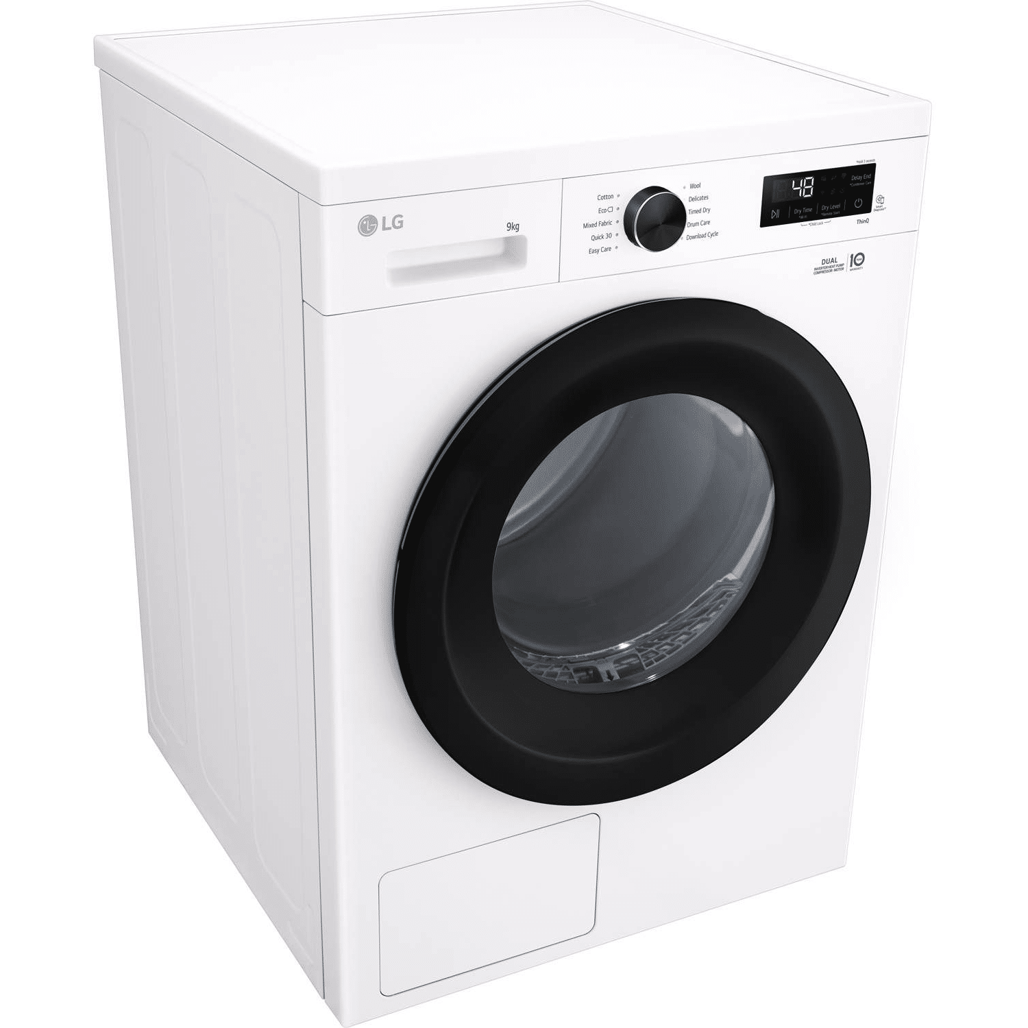 LG RHX1009NWK er en 9 kg varmepumpetørretumbler, der tørrer ved lavere temperaturer og beskytter fibrene, så tøjet bevarer pasform og farver længere. Den effektive varmepumpe cirkulerer varmen og reducerer spild, hvilket giver et lavere energiforbrug uden at gå på kompromis med tørreevnen i hverdagen.