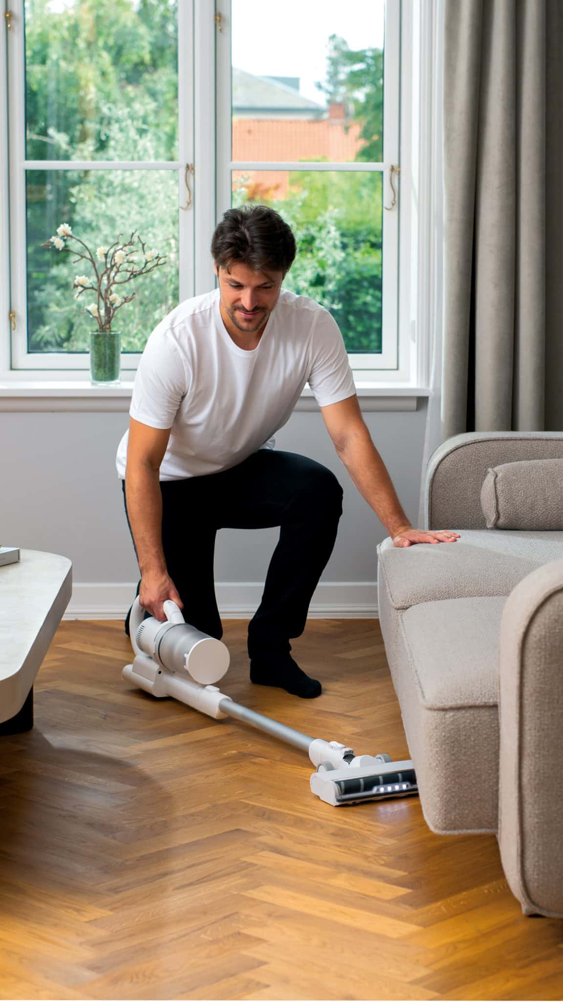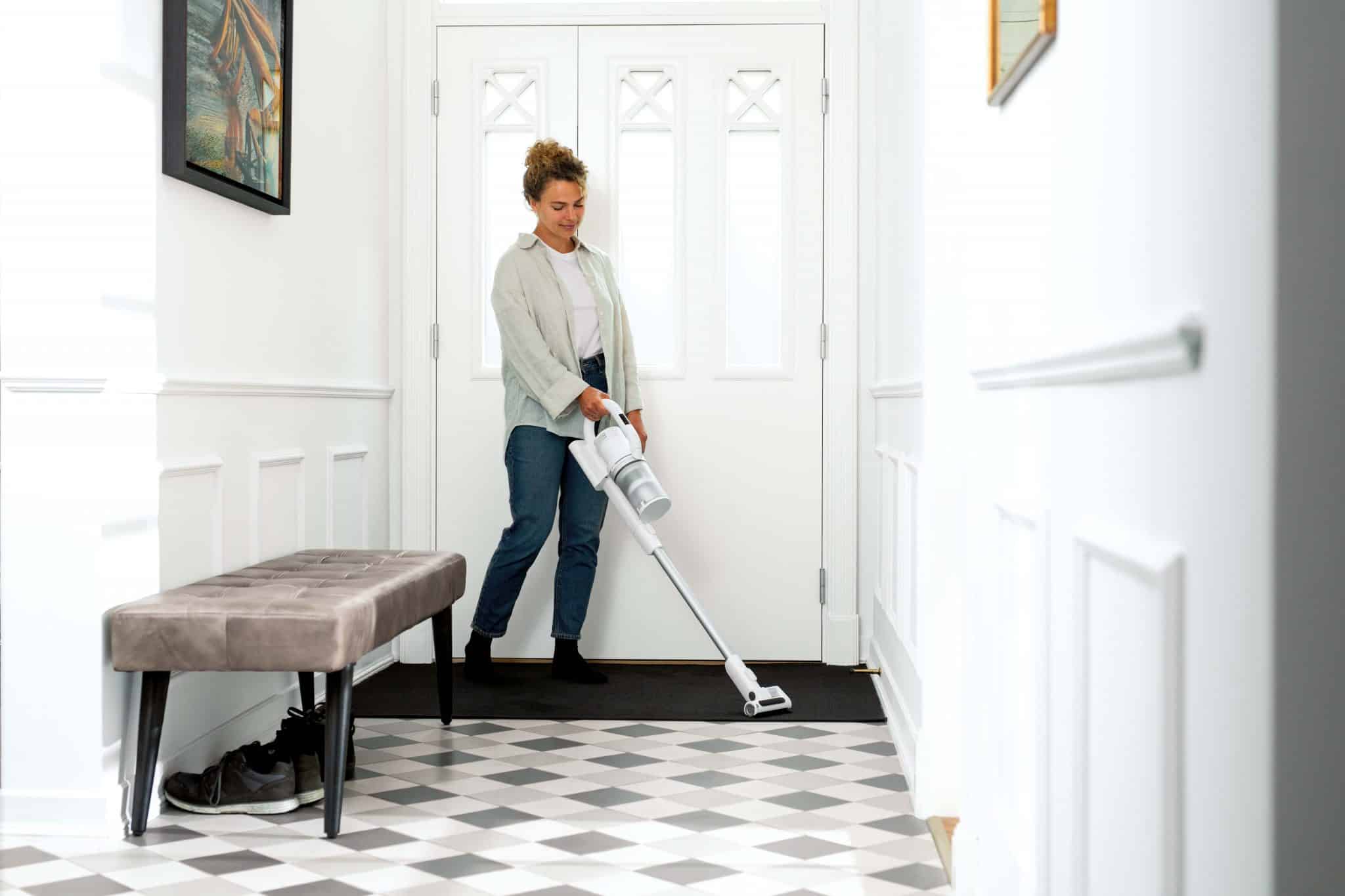 S1-støvsugeren er udstyret med et kurvet håndtag, der giver et ergonomisk greb for både en- eller tohåndsbrug. Dette sikrer ikke kun komfort, men også bedre kontrol, når du støvsuger under møbler, på reoler eller i hjørner. Den aftagelige håndholdte støvsuger gør det desuden nemt at komme til de mest besværlige steder, så du kan få alle overflader rene uden besvær.