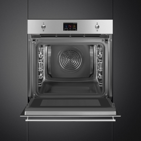 Multifunkionel indbygningsovn fra Smeg med funktioner såsom Sous Vide, dampkogning og mikrobølgefunktion. Læs hele beskrivelsen