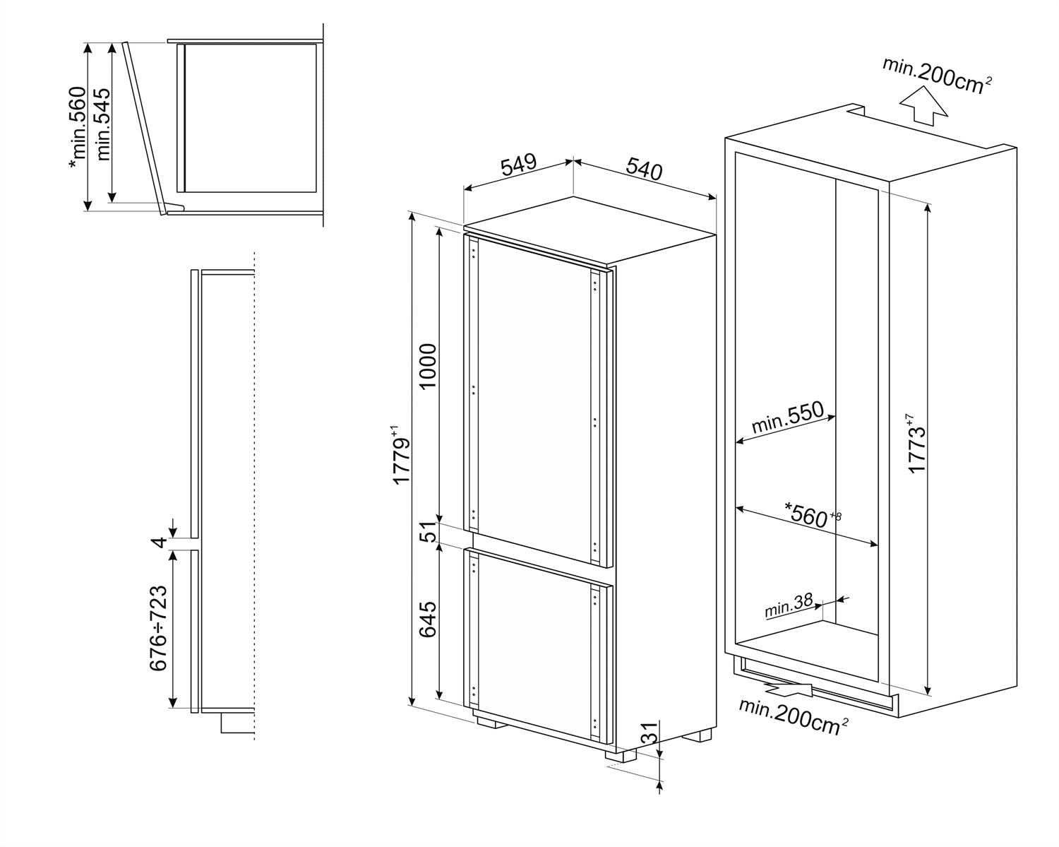 SMEG C8174N3E1 er et stilfuldt og moderne integrerbart køleskab med fryser, perfekt til den moderne husholdning. Med en samlet nettovolumen på 256 liter tilbyder dette køleskab rigelig opbevaringsplads til både friske madvarer og frostvarer. Køleskabet har en elegant sølvfarve og passer smukt ind i ethvert køkkenmiljø.